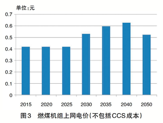 同時(shí)這個(gè)情景中,可以更好地實(shí)現(xiàn)煤電的和諧轉(zhuǎn)型。煤電在實(shí)現(xiàn)30年的技術(shù)壽命,甚至延期到35年的技術(shù)壽命后,可以停止發(fā)電,一部分仍然可以繼續(xù)保留設(shè)備作為應(yīng)急使用。這樣的話,在2035年前,煤電可以成為風(fēng)電和光伏快速發(fā)展下的保障機(jī)組,逐漸進(jìn)入調(diào)峰角色,發(fā)電利用小時(shí)數(shù)從目前的的4300小時(shí),逐漸下降到2035年后的300小時(shí)以下(見圖2)。為了能夠保持燃煤機(jī)組的合理盈利,需要支付給煤電機(jī)組調(diào)峰電價(jià)(見圖3),采用從其他種類的發(fā)電機(jī)組征收煤電附加費(fèi)的方法來進(jìn)行資金平衡。