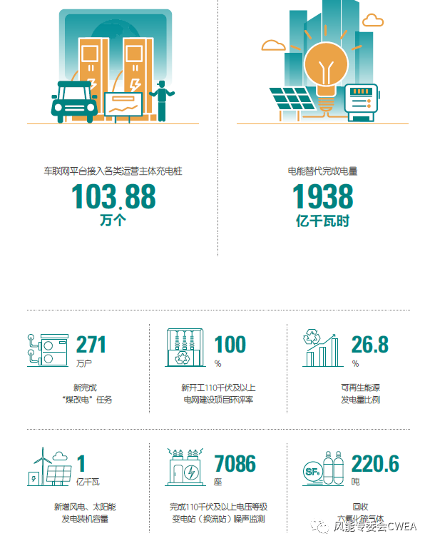 2021:全額消納清潔能源;推進(jìn)電能替代,實(shí)現(xiàn)替代電量超90億千瓦時(shí)。