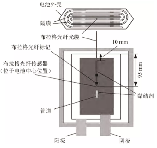 圖5 嵌有布拉格光纖傳感器的鋰離子電池裝置