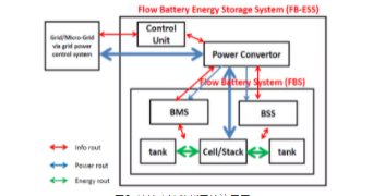 從圖中可以看出,確定后的液流電池儲能系統(tǒng)包括:液流電池系統(tǒng)和功率轉(zhuǎn)換器和控制單元,液流電池系統(tǒng)由電池管理系統(tǒng)、電堆、電池支撐系統(tǒng)和電解液儲罐等構(gòu)成。