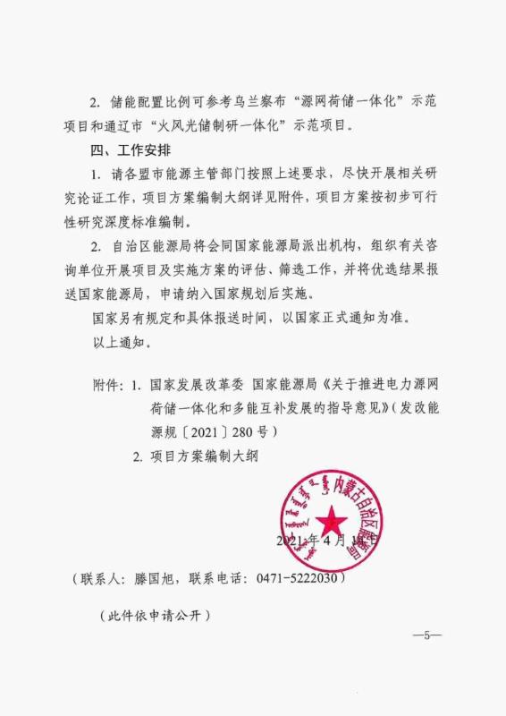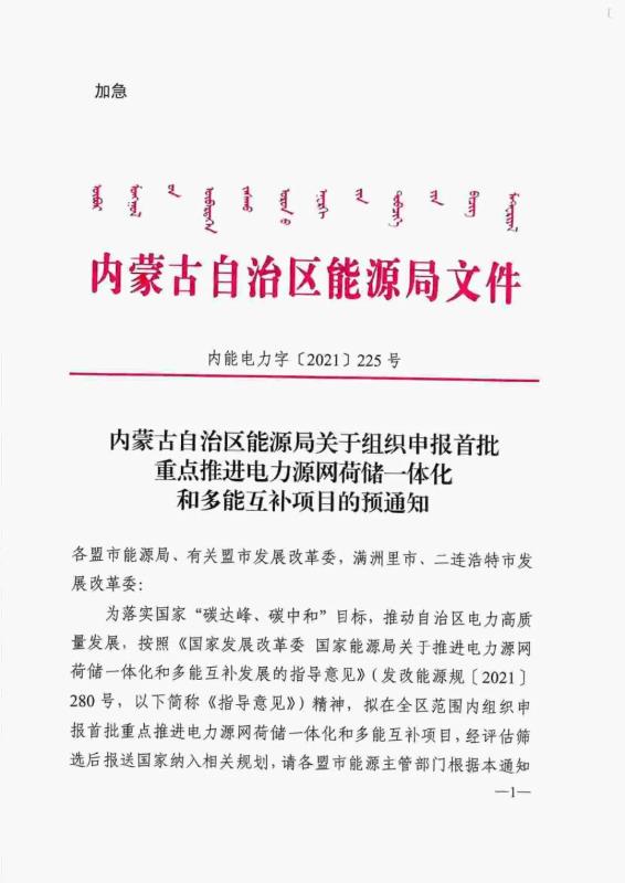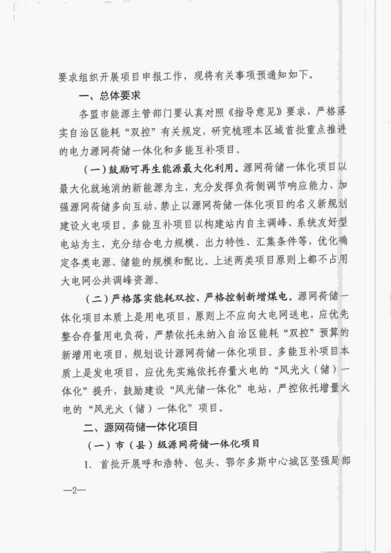 中國儲能網(wǎng)訊:4月14日,內(nèi)蒙古自治區(qū)能源局發(fā)布加急文件《關(guān)于組織申報首批重點推進(jìn)電力源網(wǎng)荷儲一體化和多能互補(bǔ)項目的預(yù)通知》。文件明確要求“鼓勵可再生能源最大化利用”和“嚴(yán)格落實能耗雙控、嚴(yán)格控制新增煤電”,禁止以源網(wǎng)荷儲一體化的名義新規(guī)劃建設(shè)火電項目。多能互補(bǔ)項目應(yīng)優(yōu)先實施依托存量火電的“風(fēng)光火(儲)一體化”提升,鼓勵建設(shè)“風(fēng)光儲一體化”電站,嚴(yán)控依托增量火電的“風(fēng)光火(儲)一體化”項目。