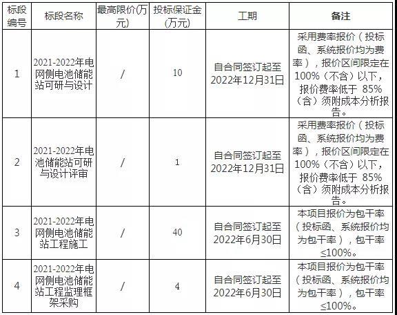 上述4個標(biāo)包均為框架招標(biāo),不保證最終采購數(shù)量。4個標(biāo)包的標(biāo)的儲能站有可能交叉,但不完全相同。