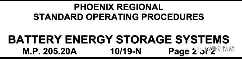 2019年10月,也就是爆炸事故半年后,SOP狂魔鳳凰城消防局發(fā)布了電池儲能系統(tǒng)標(biāo)準(zhǔn)作業(yè)程序,核心內(nèi)容就是“離遠(yuǎn)點,小心毒,小心炸,控蔓延”。至于處置嘛,“看情況,商量著辦”。
