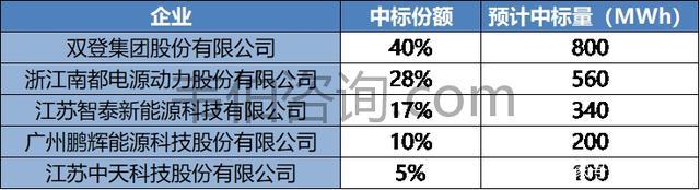圖表4:2020年5月中國鐵塔備用磷酸鐵鋰蓄電池組產(chǎn)品采購項目中標(biāo)情況
