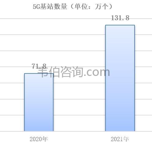 圖表2:2020-2021年全國5G通信基站數(shù)量(萬個)