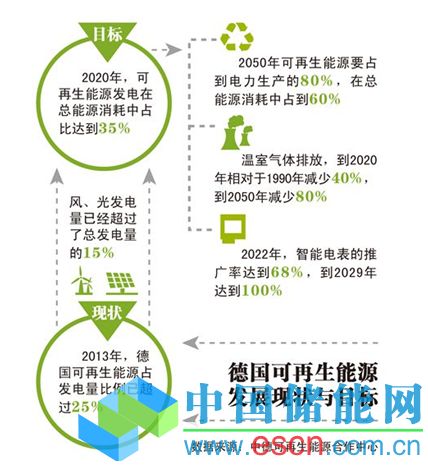 10年前,德國政府制定了2020年可再生能源發(fā)電量比例達(dá)到35%的目標(biāo)。據(jù)統(tǒng)計(jì),2013年,德國可再生能源占發(fā)電量的比例已超過25%,德國正離自己的目標(biāo)越來越近。