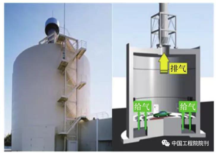 由政府與汽車(chē)企業(yè)各提供50%資金建設(shè)和運(yùn)行的日本自動(dòng)車(chē)研究所是日本開(kāi)展車(chē)用氫能安全研究的重要機(jī)構(gòu),建有世界上第一座可以進(jìn)行FCEV、電動(dòng)汽車(chē)(EV)、內(nèi)燃機(jī)汽車(chē)火災(zāi)爆炸評(píng)價(jià)測(cè)試的大型試驗(yàn)倉(cāng),如圖2所示,還建有高壓氫氣試驗(yàn)設(shè)備、液壓試驗(yàn)設(shè)備、液化氫試驗(yàn)設(shè)備等。