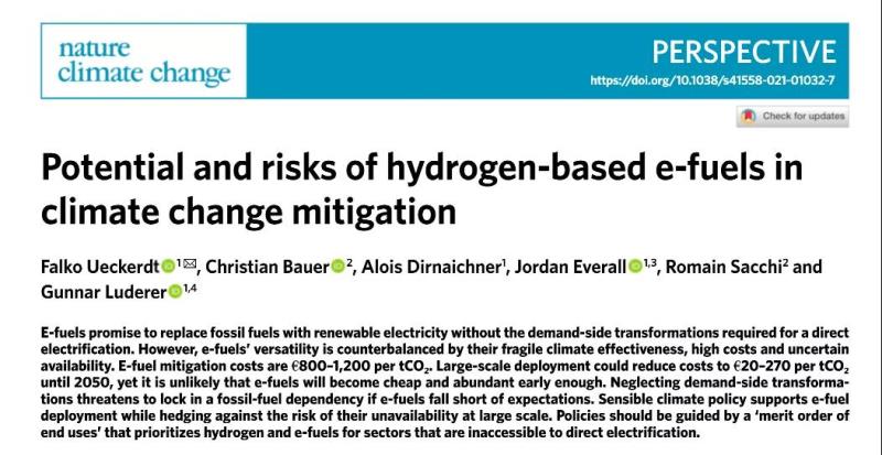 波茨坦氣候影響研究所(PIK)學(xué)者在《自然·氣候變化》雜志上發(fā)表文章指出,氫基燃料主要用于航空或工業(yè)過程等不易于電氣化的領(lǐng)域。但是,生產(chǎn)這些燃料的效率太低,成本太高,而且它們的可用性也太不確定,無法廣泛地取代化石燃料,例如汽車或供暖。對(duì)大多數(shù)行業(yè)來說,直接用電,例如在電池電動(dòng)汽車或熱泵中,更具經(jīng)濟(jì)意義。依賴以氫為基礎(chǔ)的燃料,反而導(dǎo)致進(jìn)一步依賴化石燃料和溫室氣體排放。