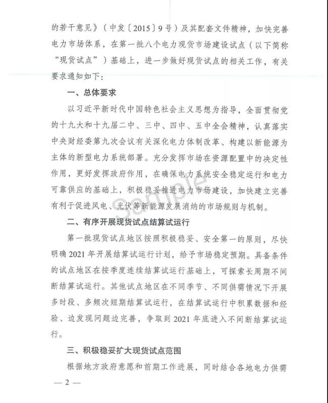 《通知》要求第一批試點區(qū)域按照積極穩(wěn)妥、安全第一的原則,盡快明確2021年試運行計劃,給予市場穩(wěn)定預期。具備條件的地區(qū),在按季度連續(xù)結算試運行基礎上,探索長周期不間斷結算試運行。其他地區(qū)在不同季節(jié)、不同供需條件下開展多時段、多頻次短期結算試運行,在結算試運行中積累經驗,發(fā)現問題并完善,爭取2021年底進入不間斷結算試運行。