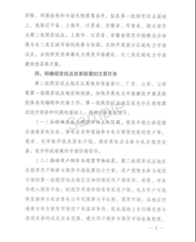 《通知》還明確了電力現貨試點改革探索的主要任務,包括:合理確定市場主體范圍;推動用戶側參與市場結算;統(tǒng)籌開展中長期、現貨、輔助服務;做好本地市場與省間市場銜接;推動新能源參與市場;探索容量成本回收機制;建立合理的費用疏導機制。