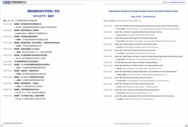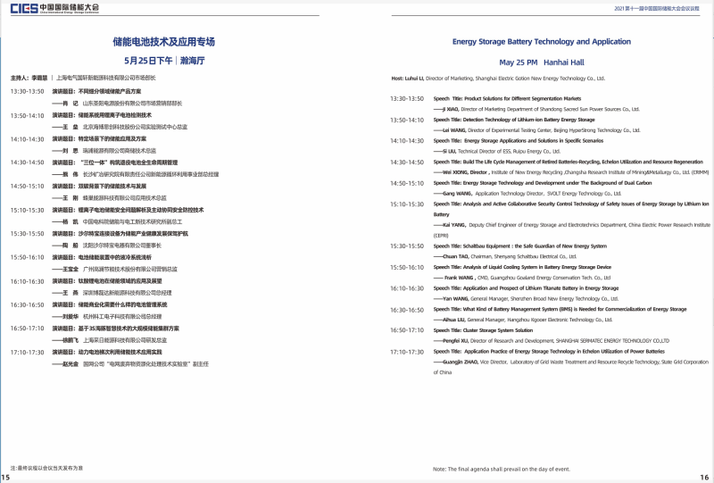 本屆大會(huì)將設(shè)置第十一屆中國(guó)國(guó)際儲(chǔ)能大會(huì)開(kāi)幕式及“雙碳”目標(biāo)下儲(chǔ)能產(chǎn)業(yè)發(fā)展新路徑專場(chǎng)、新型電力系統(tǒng)與儲(chǔ)能整體解決方案專場(chǎng)、高比例可再生能源與儲(chǔ)能產(chǎn)業(yè)協(xié)調(diào)發(fā)展路徑專場(chǎng)、儲(chǔ)能系統(tǒng)集成專場(chǎng)、儲(chǔ)能安全與檢測(cè)認(rèn)證專場(chǎng)、儲(chǔ)能電池技術(shù)與應(yīng)用專場(chǎng)、儲(chǔ)能電站規(guī)劃與設(shè)計(jì)專場(chǎng)、國(guó)際儲(chǔ)能標(biāo)準(zhǔn)與市場(chǎng)準(zhǔn)入專場(chǎng)、電力輔助服務(wù)及現(xiàn)貨交易專場(chǎng)、儲(chǔ)能電站并網(wǎng)與調(diào)度專場(chǎng)、儲(chǔ)能安全與系統(tǒng)集成專場(chǎng)、新型儲(chǔ)能技術(shù)及應(yīng)用專場(chǎng)、綜合能源服務(wù)與車電互聯(lián)專場(chǎng)、氫儲(chǔ)能與燃料電池專場(chǎng)等14個(gè)專場(chǎng)論壇。