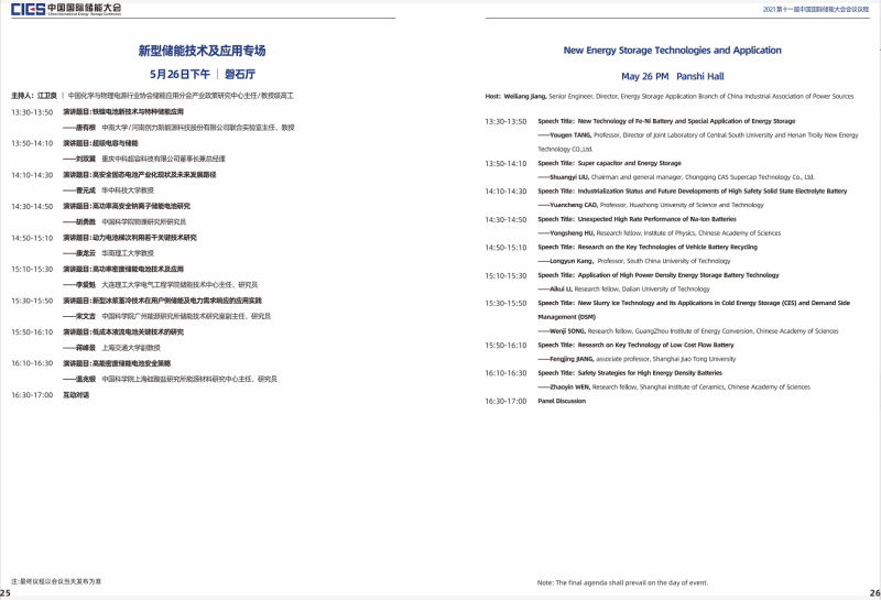中國(guó)儲(chǔ)能網(wǎng)訊:由中國(guó)化學(xué)與物理電源行業(yè)協(xié)會(huì)主辦的CIES2021年第十一屆中國(guó)國(guó)際儲(chǔ)能大會(huì)將于2021年5月24-26日在杭州洲際酒店隆重召開(kāi)。本次大會(huì)主題為“堅(jiān)守儲(chǔ)能安全底線,推動(dòng)產(chǎn)業(yè)創(chuàng)新發(fā)展”。