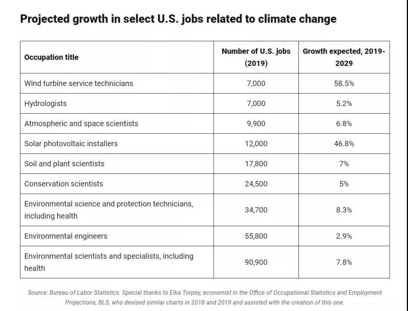 據(jù)美國勞工統(tǒng)計局的數(shù)據(jù),預計2029年前,一系列與氣候有關的職業(yè)將快速增長: