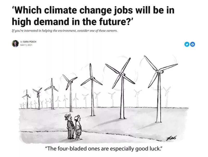美國yaleclimateconnections.org網(wǎng)站發(fā)表文章,回答了這樣一個問題:應對氣候變化、走向碳中和,未來什么樣的職業(yè)會有很高的需求?