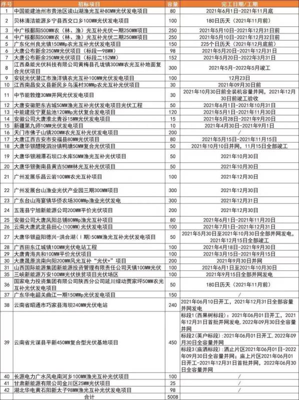 根據項目表格可以看出,本次統(tǒng)計的項目并網時間大部分集中于三、四季度。不過需要注意的一點是,雖然項目EPC招標已經啟動,并且在招標公告中也明確了項目的并網和竣工時間,但是項目能否全容量順利并網仍受今年產業(yè)鏈價格波動以及供應情況的影響。