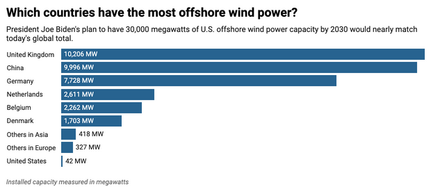 在歐洲,許多國家的政府已經(jīng)降低了該行業(yè)的監(jiān)管風(fēng)險,海上風(fēng)能的成本下降速度比專家們預(yù)期的要快得多,達到每兆瓦時50美元左右。如果美國風(fēng)電場實現(xiàn)這樣的成本,那么靠近東海岸大型城市中心的海上風(fēng)電將具有競爭力,實現(xiàn)追歐洲、趕中國的目標(biāo)。