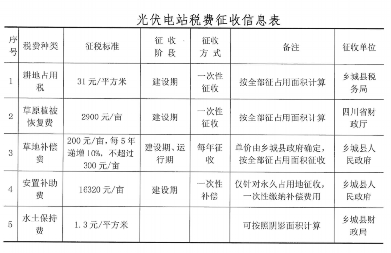 根據(jù)稅費征收信息,耕地占用稅標準為31元/平,植被恢復(fù)費為2900元/畝,均按照全部征占用面積計算。如果按照100MW光伏電站占地3000畝計算,正斗一期200MW光伏基地土地稅費合計將超過1.5億元。