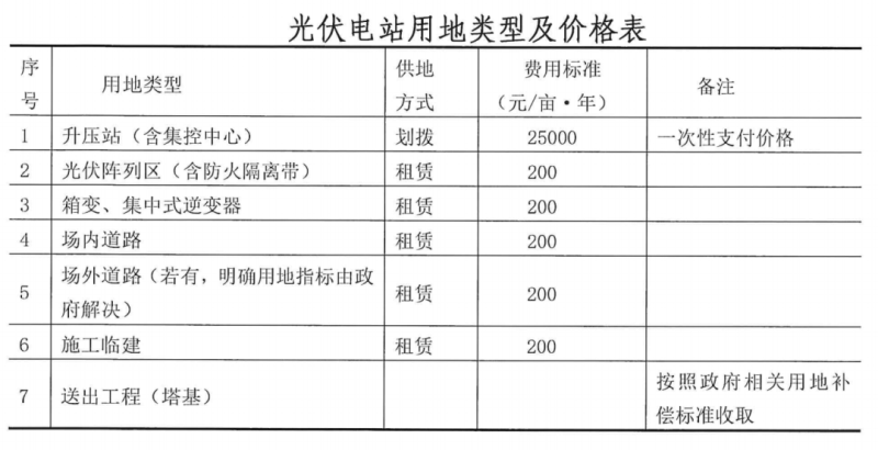 文件明確正斗一期所用土地均為草原,根據(jù)光伏電站用地類型及價格表,光伏陣列區(qū)租賃費用標準為200元/畝/年。需要注意的是,此次招標還明確了相關(guān)土地稅費的征收標準,這在國內(nèi)大型光伏基地招標中尚屬首次。