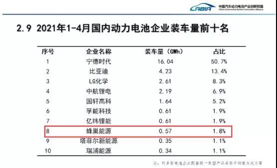 其中,蜂巢能源1-4月以0.57GWh的裝機(jī)量位居第8,牢牢站穩(wěn)國(guó)內(nèi)裝機(jī)量TOP10陣營(yíng),成為動(dòng)力電池裝機(jī)新勢(shì)力“黑馬”。