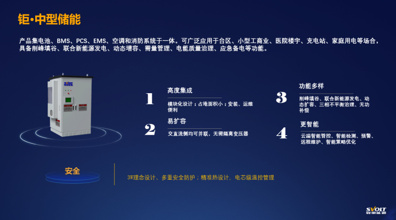 產(chǎn)品集電池、BMS、PCS、EMS、空調(diào)和消防系統(tǒng)于一體。可廣泛應(yīng)用于臺(tái)區(qū)、小型工商業(yè)、醫(yī)院樓宇、充電站、家庭用電等場合,具備削峰填谷、聯(lián)合新能源發(fā)電、動(dòng)態(tài)增容、需量管理、電能質(zhì)量治理、應(yīng)急備電等功能。