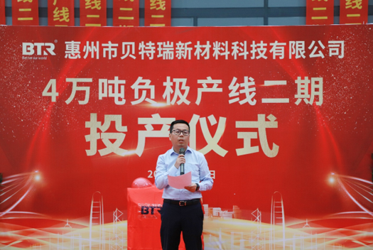 貝特瑞集團(tuán)總經(jīng)理任建國(guó)致辭:惠州貝特瑞4萬噸負(fù)極產(chǎn)線二期的順利投產(chǎn),意味著惠州貝特瑞具備了年產(chǎn)4萬噸石墨負(fù)極的生產(chǎn)能力,能夠有效改善公司目前的供貨壓力。同時(shí)也提出了對(duì)惠州公司的期望和要求,特別是安全、品質(zhì)和經(jīng)營(yíng)質(zhì)量等方面。希望惠州貝特瑞迎難而上,跟上公司快速發(fā)展的步伐。
