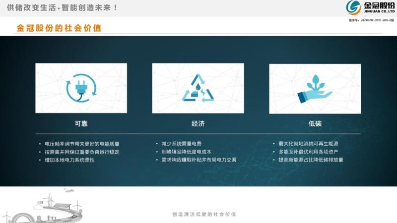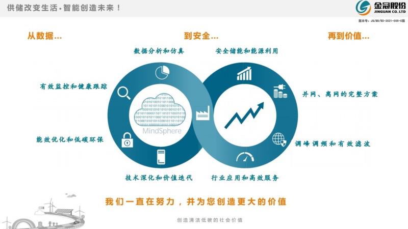 金冠股份是一家專業(yè)的智能產(chǎn)品解決方案綜合性服務商。公司主要專注于0.4~40.5kV全系列供電產(chǎn)品的生產(chǎn)和研發(fā),同時,著重于太陽能、風能、儲能、電動汽車等新能源電源設備的研發(fā)、生產(chǎn)、銷售和服務的國家重點高新技術企業(yè)。主要產(chǎn)品有10~24kV氣體絕緣金屬封閉開關設備、10~40.5kV空氣絕緣金屬封閉開關設備等全系列供電產(chǎn)品,以及光伏逆變器、風電變流器、風電及光伏的并、離儲能系統(tǒng)、微電網(wǎng)供電及儲能系統(tǒng)、光伏系統(tǒng)、新能源汽車充換電系統(tǒng)及設備、智能運維服務等,并致力于為用戶提供全系列的完整清潔能源全生命周期解決方案。
