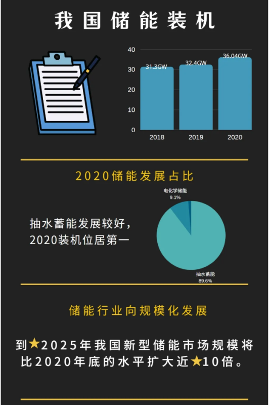 2021年4月21日,國家發(fā)革委和國家能源局聯(lián)合發(fā)布了《關(guān)于加快推動新型儲能發(fā)展的指導(dǎo)意見(征求意見稿)》。其中提出“到2025年,實(shí)現(xiàn)新型儲能從商業(yè)化初期向規(guī)?;l(fā)展轉(zhuǎn)變,新型儲能裝機(jī)規(guī)模達(dá) 3000 萬千瓦以上;到2030年,實(shí)現(xiàn)新型儲能全面市場化發(fā)展”的主要目標(biāo)?!?