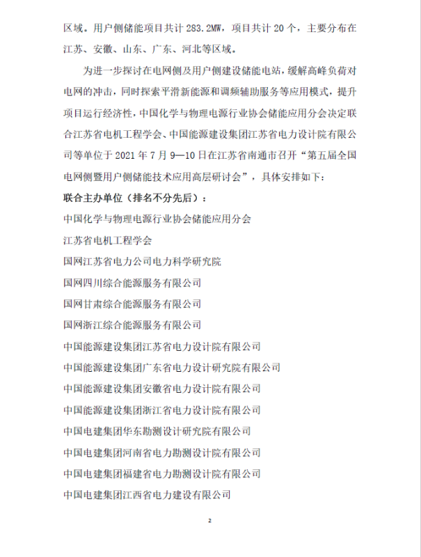 關(guān)于召開第五屆全國電網(wǎng)側(cè)暨用戶側(cè)儲能技術(shù)應(yīng)用高層研討會的通知