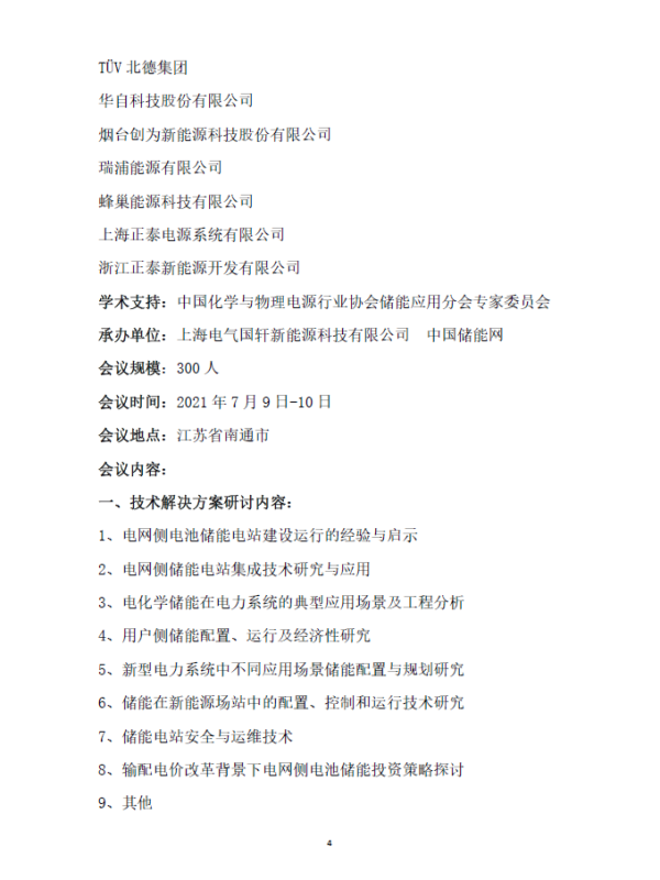 為進(jìn)一步探討在電網(wǎng)側(cè)及用戶側(cè)建設(shè)儲能電站,緩解高峰負(fù)荷對電網(wǎng)的沖擊,同時探索平滑新能源和調(diào)頻輔助服務(wù)等應(yīng)用模式,提升項目運行經(jīng)濟性,中國化學(xué)與物理電源行業(yè)協(xié)會儲能應(yīng)用分會決定聯(lián)合江蘇省電機工程學(xué)會、中國能源建設(shè)集團江蘇省電力設(shè)計院有限公司等單位于2021年7月9—10日在江蘇省南通市召開“第五屆全國電網(wǎng)側(cè)暨用戶側(cè)儲能技術(shù)應(yīng)用高層研討會”,具體安排如下: