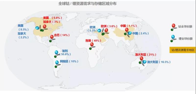 一方面,鈷鋰戰(zhàn)略資源供需分離,原材料端受制于人。鋰離子電池將逐漸成為大宗商品,鋰鈷等金屬則成為戰(zhàn)略性資源,中國作為鋰鈷資源的需求大國,卻僅占有全球鋰、鈷資源的2.4%和1.1%,原材料端受制于人,供應鏈安全受到挑戰(zhàn)。