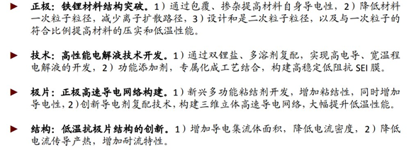 鋰電廠商主要從電池化學(xué)體系入手,以鵬輝能源為例,其通過多方面的嘗試和探索,已經(jīng)可以實現(xiàn)-20℃之下放電保持率 91%,性能實現(xiàn)大幅突破。