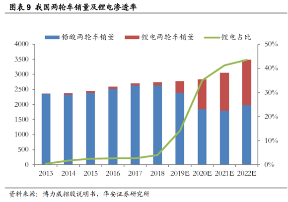2019年,中國鉛蓄電池產(chǎn)量達202.5GWh,占全球40%市場份額,其中兩輪電動車的電池占比達33%,市場規(guī)模達396億。
