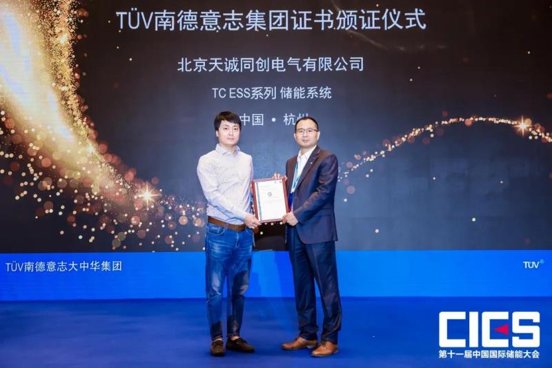 天誠(chéng)同創(chuàng)旗下型號(hào)為TC ESS系列儲(chǔ)能系統(tǒng)產(chǎn)品獲TüV南德安全認(rèn)證證書