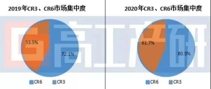 從市場競爭格局來看, 2020年中國鋰電隔膜市場TOP6企業(yè)市場占比為80.3%,TOP3企業(yè)市場占比61.7%,同比均有所提升。