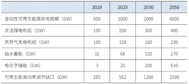 圖表1:傳統(tǒng)調(diào)峰儲(chǔ)能方案下未來的可再生能源功率調(diào)節(jié)缺口(源自車百智庫(kù))