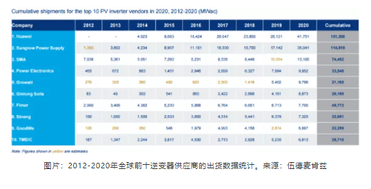 圖片:2020年全球變器供應商出貨占比排名。來源:伍德麥肯茲