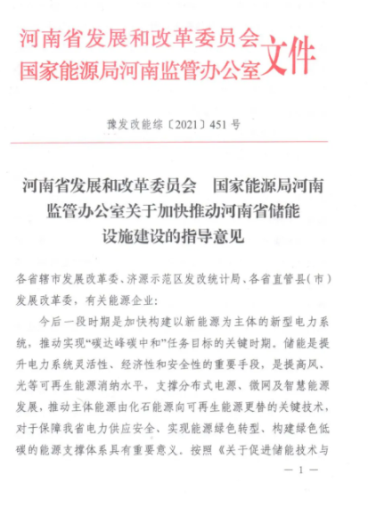 中國儲能網(wǎng)迅:日前,河南省發(fā)改委及河南能源局發(fā)布《關(guān)于加快推動河南省儲能設(shè)施建設(shè)的指導(dǎo)意見》明確儲能是提升電力系統(tǒng)靈活性、經(jīng)濟性和安全性的重要手段,是提高風(fēng)、光等可再生能源消納水平,推動主體能源由化石能源向可再生能源更替的關(guān)鍵技術(shù)。