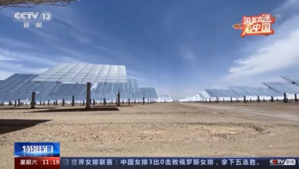 總臺(tái)央視記者 黃達(dá):我身邊的是4400塊、每塊面積達(dá)138平米的反光鏡,太陽(yáng)光通過(guò)這些反光鏡直接反射到我身邊的吸熱塔的塔頂。它們會(huì)像向日葵一樣,每天隨著太陽(yáng)光角度的變化而不斷地變換自己的角度。