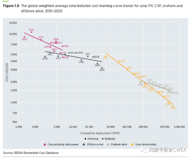幾種可再生能源發(fā)電技術(shù)的學(xué)習(xí)曲線(xiàn)