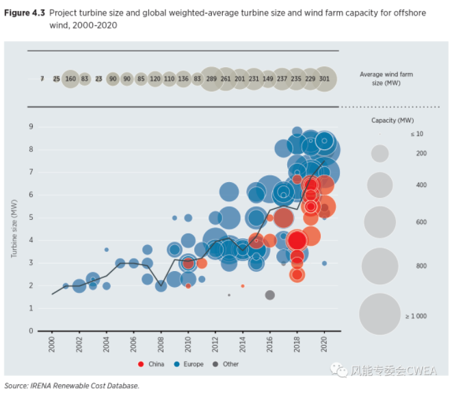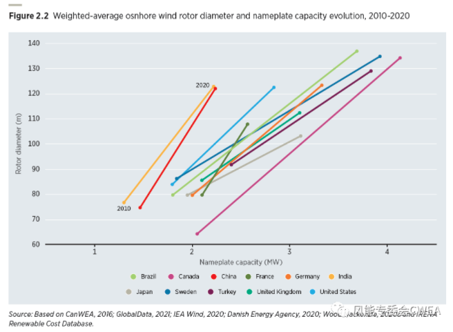 陸上風(fēng)機(jī)風(fēng)輪直徑增長(zhǎng)情況