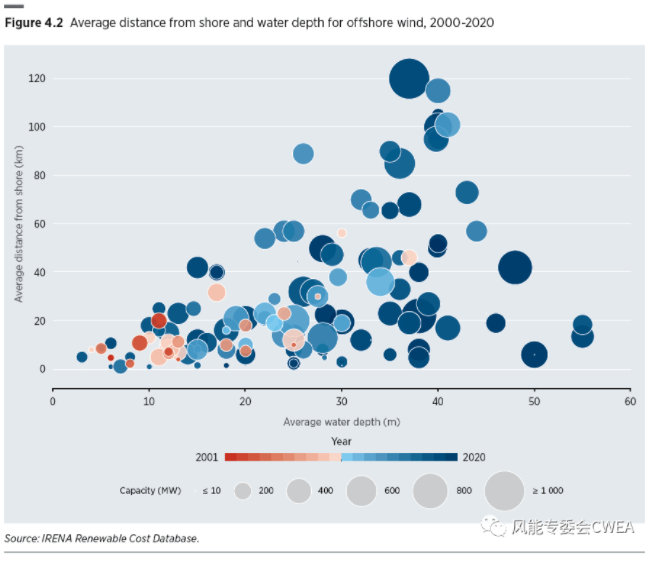 平均離岸距離和水深情況(含項(xiàng)目容量關(guān)系)