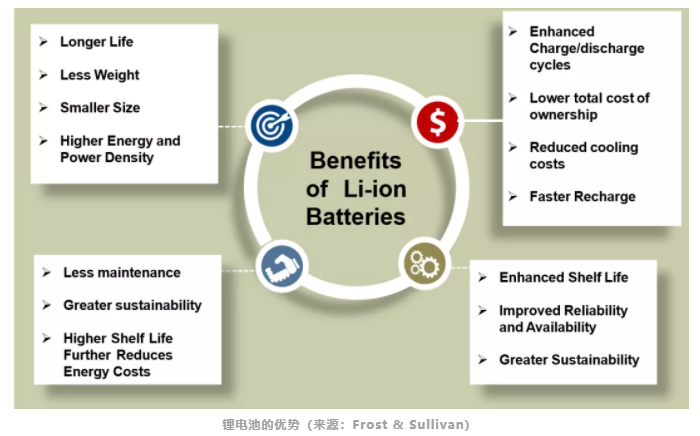 對于數(shù)據(jù)中心行業(yè)而言,供電系統(tǒng)如同數(shù)據(jù)中心的心臟,為設備提供可靠穩(wěn)定的動力。而電池被認為是供電動力的生命之源,鋰電相對于鉛酸電池而言具備壽命長、占地小、低承重要求、簡單維護、環(huán)保、可靠穩(wěn)定等優(yōu)勢,在未來必將成為數(shù)據(jù)中心備電的首選。