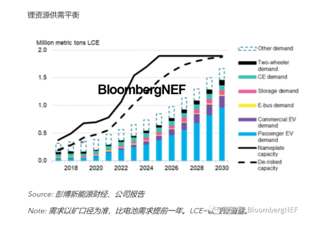 到2030年,電池級(jí)鋰化學(xué)品應(yīng)供應(yīng)充足,可以滿足電池需求,但鋰金屬總需求(170萬公噸碳酸鋰當(dāng)量)可能面臨供應(yīng)缺口。彭博新能源財(cái)經(jīng)預(yù)計(jì),鋰市場(chǎng)供應(yīng)將在未來2年以及2030之前的最后幾年中收緊。材料回收有助于平衡市場(chǎng)供需。