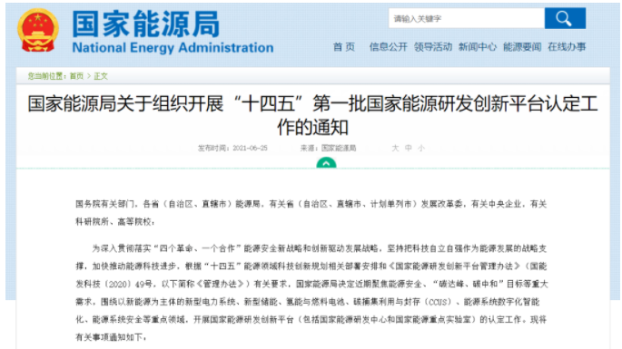 國(guó)家能源局關(guān)于組織開(kāi)展“十四五”第一批國(guó)家能源研發(fā)創(chuàng)新平臺(tái)認(rèn)定工作的通知