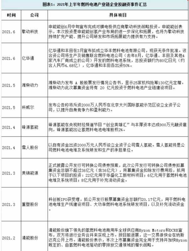 據(jù)不完全統(tǒng)計(jì),2021年上半年燃料電池行業(yè)發(fā)生的投融資事件中,其中燃料電池環(huán)節(jié)占比超過一半。為什么這個(gè)環(huán)節(jié)資本投入力度最大?