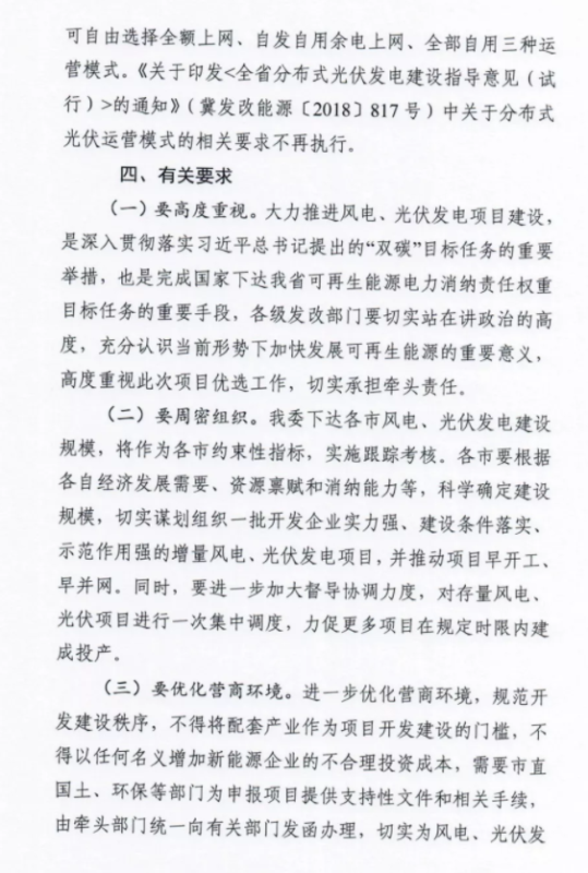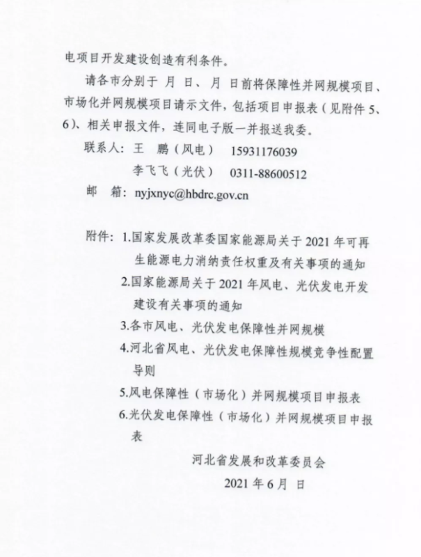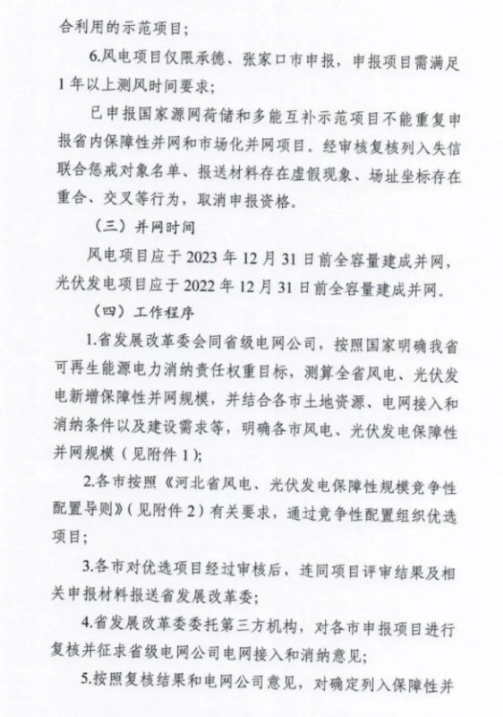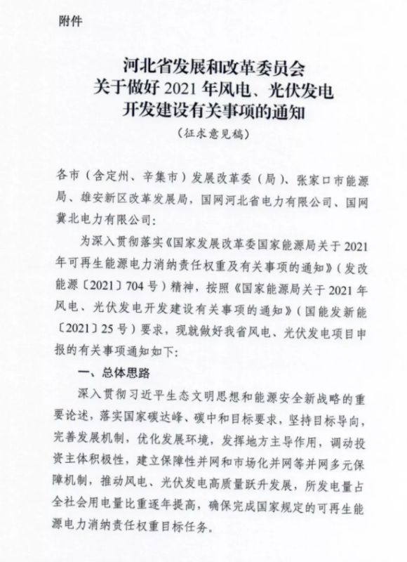 中國儲能網(wǎng)訊:近日,河北省發(fā)改委印發(fā)《關(guān)于做好2021年風(fēng)電、光伏發(fā)電開發(fā)建設(shè)有關(guān)事項的通知》(征求意見稿),就2021年河北省風(fēng)電、光伏保障性并網(wǎng)和市場化并網(wǎng)項目管理給出相關(guān)意見。