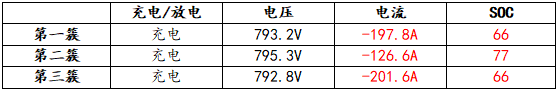 此外,由于電池內(nèi)阻較小,因不一致性造成的各簇電壓差異即使僅有幾伏,簇間不均流就會很大,如下表中某電站實測數(shù)據(jù)所示,充電電流差異達到75A(與理論平均值相比偏差達42%),偏差電流會導(dǎo)致部分電池簇出現(xiàn)過充過放現(xiàn)象;極大影響充放電效率、電池壽命以及甚至導(dǎo)致嚴(yán)重安全事故。