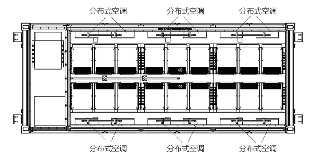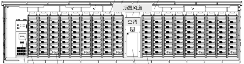 傳統(tǒng)儲能集裝箱內(nèi)配置1-2個集中式空調(diào),采用縱向風(fēng)道進行散熱,風(fēng)道長度長達約6米-12米,由于散熱通道太長,無法保障每個電池包和電池簇的溫度一致性。