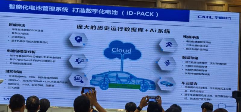 寧德時(shí)代打造的數(shù)字化電池(iD-PACK),包含智能算法、電池包模型分析、域控制器、殘值評(píng)估、數(shù)據(jù)存儲(chǔ)、車云結(jié)合,將動(dòng)力電池的全生命周期納入管理。