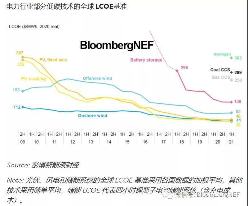 彭博新能源財經(jīng)首次將碳捕獲和封存系統(tǒng)納入煤炭和天然氣的LCOE計算中。根據(jù)對過去項目的分析,彭博新能源財經(jīng)估計,在五個關(guān)鍵地區(qū)中,搭配CCS系統(tǒng)的煤電LCOE為133到449美元/MWh,氣電LCOE為156到336美元/MWh。目前,使用綠氫的氣電LCOE為293到535美元/MWh。2021年上半年,小型核反應(yīng)堆在負(fù)載跟隨模式下的LCOE為354美元/MWh,在全天運行模式下的LCOE為240美元/MWh。更多信息,請期待即將發(fā)布《LCOE亮點:氫能、CCS和小型核反應(yīng)堆》